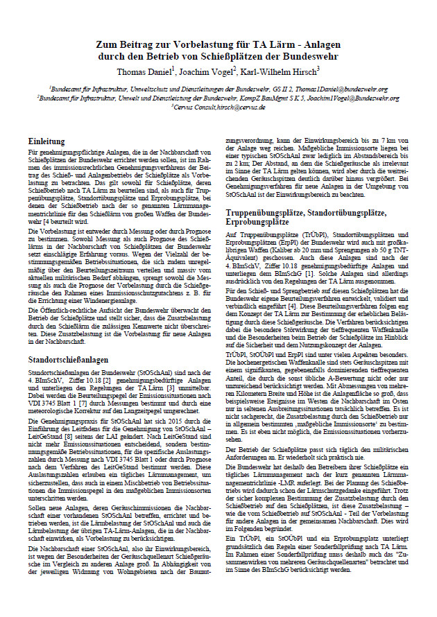 Zum Beitrag zur Vorbelastung für TA Lärm - Anlagen durch den Betrieb von Schießplätzen der Bundeswehr