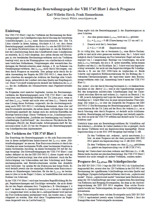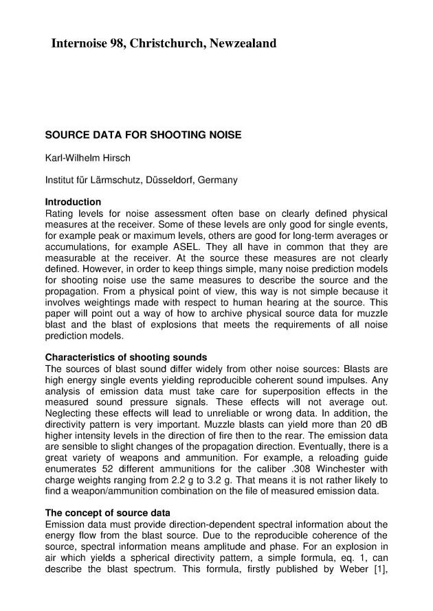 Zur Weiterentwicklung der VDI 3745, Blatt 2 "Prognose von Schießlärm