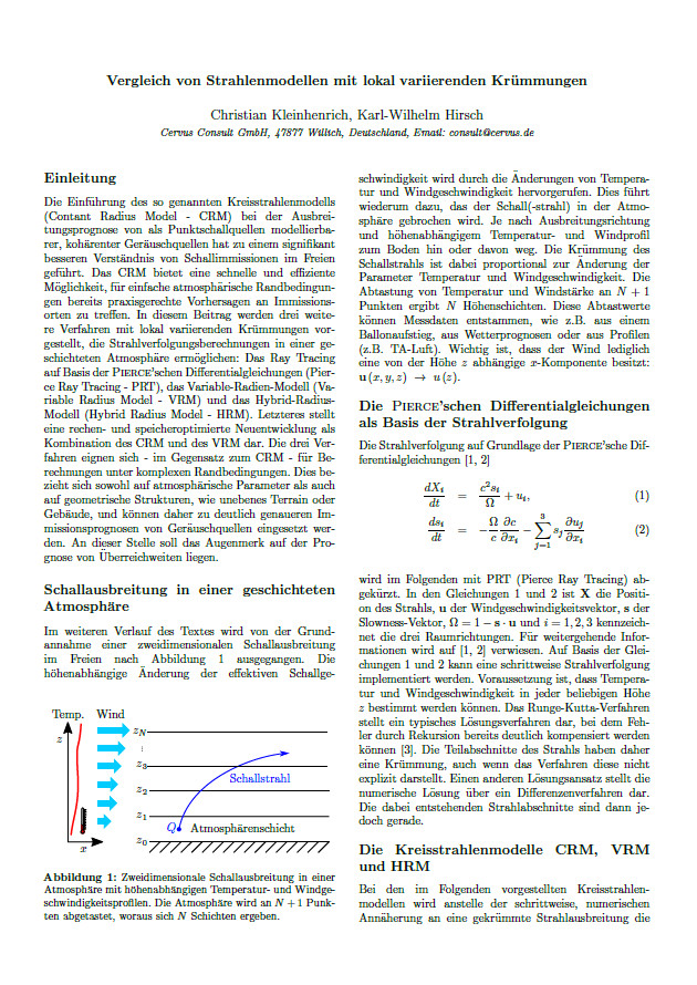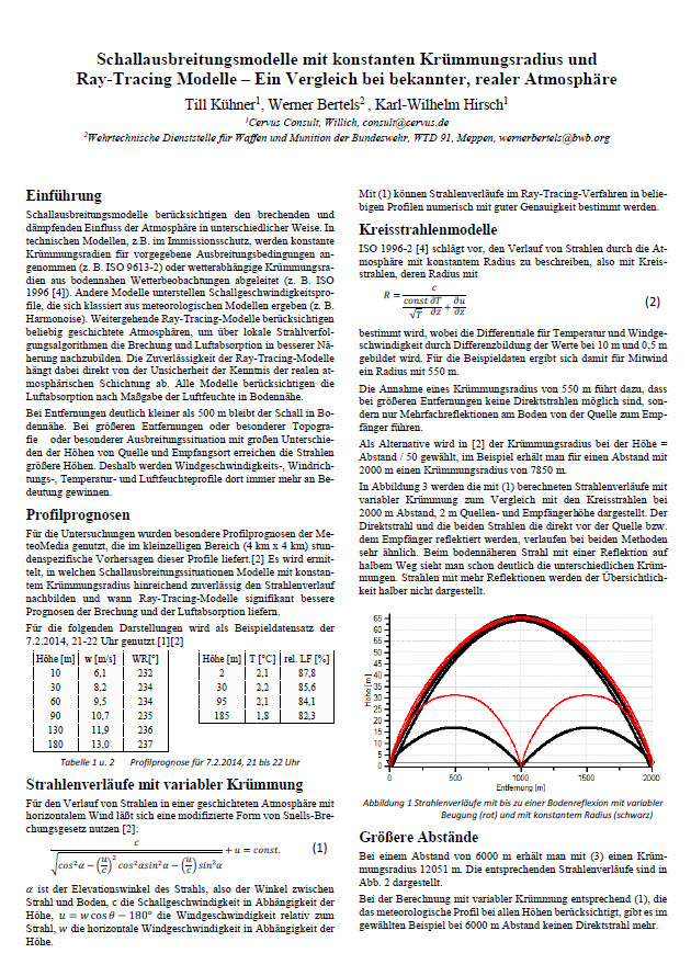 Schallausbreitungsmodelle mit konstanten Krümmungsradius und Ray-Tracing Modelle – Ein Vergleich bei bekannter, realer Atmosphäre