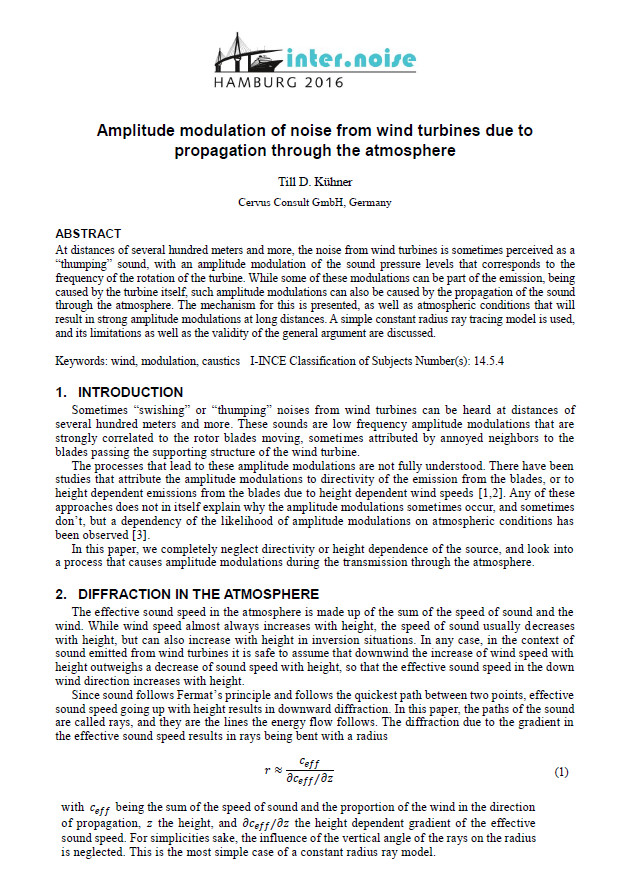 Amplitude modulation of noise from wind turbines due to propagation through the atmosphere