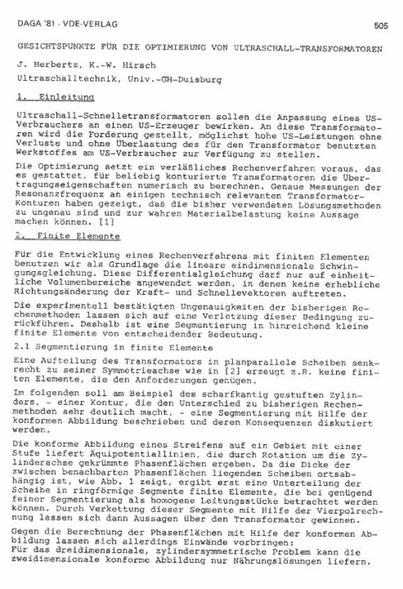 Fortschritte der Akustik DAGA 1981; DPG GmbH Bad Honnef 1981, S. 505-508