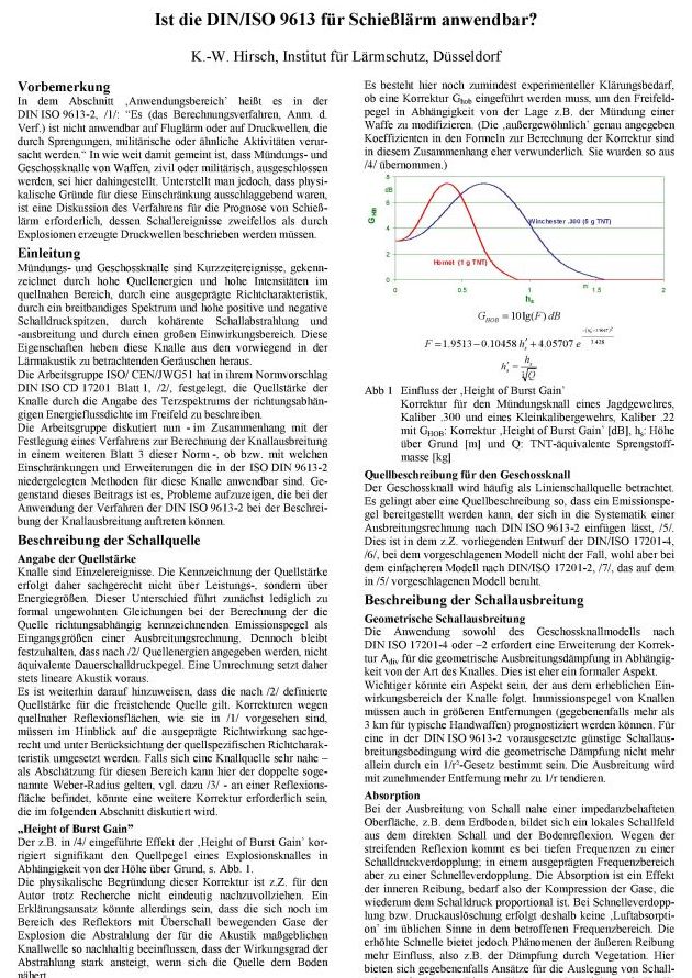 Ist die DIN/ISO 9613 für Schießlärm anwendbar?