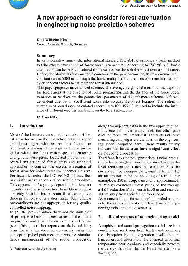 Ein neues Verfahren zur Berechnung der Zusatzdämpfung durch Waldstücke in technischen Schallausbreitungsmodellen