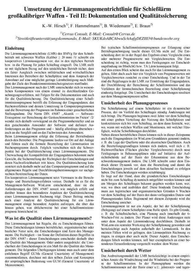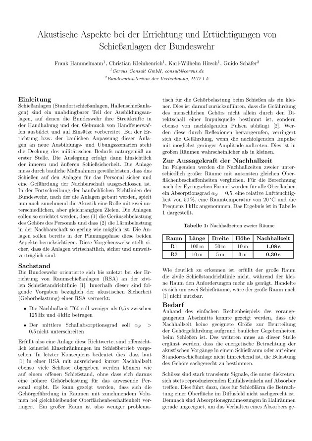 Akustische Aspekte bei der Errichtung und Ertüchtigungen von Schießanlagen der Bundeswehr