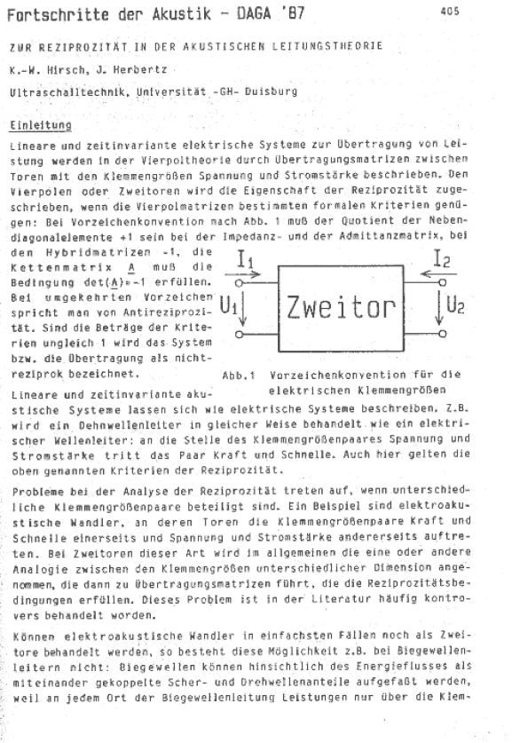 Fortschritte der Akustik DAGA 1987; DPG GmbH Bad Honnef 1987 S. 405-408