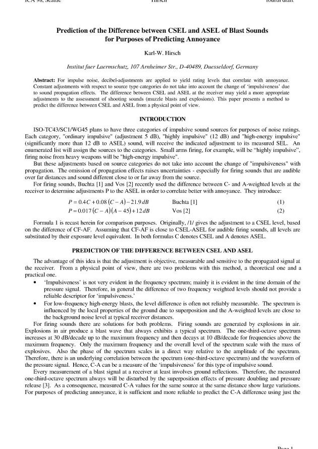 Paul D. Schomer, E. Buchta, K.-W. Hirsch