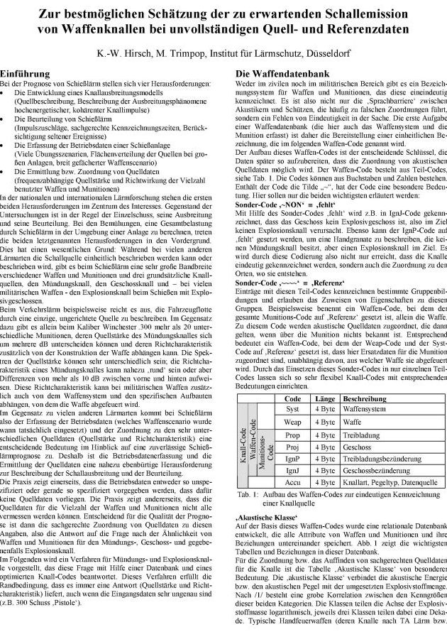 Zur bestmöglichen Schätzung der zu erwartenden Schallemission von Waffenknallen bei unvollständigen Quell- und Referenzdaten