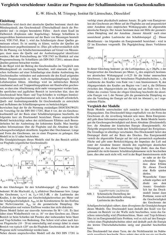 Vergleich verschiedener Ansätze zur Prognose der Schallimmission von Geschossknallen
