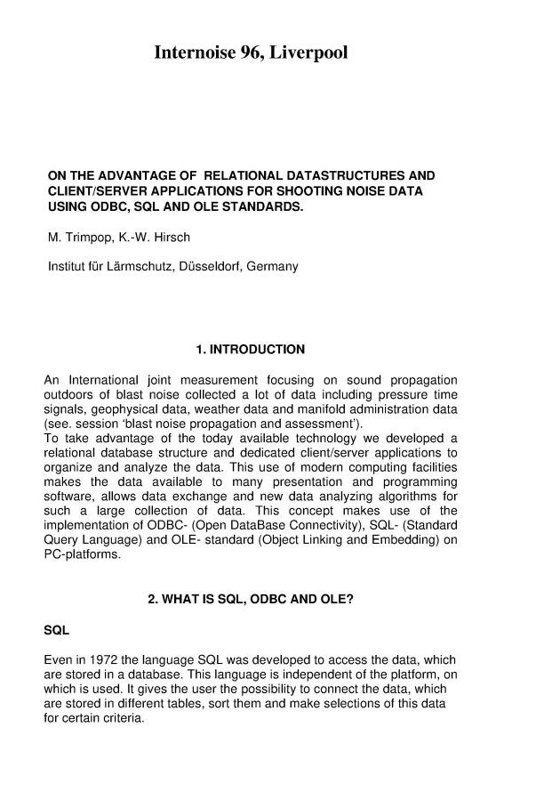 On the Advantage of Relational Data Structures And Client/Server Applications For Shooting Noise Data Using ODBC, SQL And OLE Standards