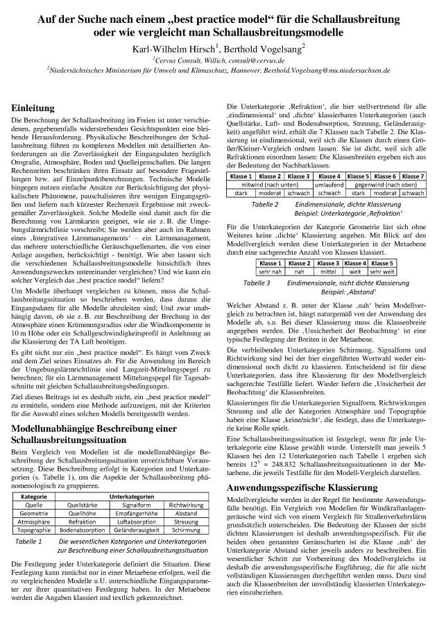 Auf der Suche nach einem „best practice model“ für die Schallausbreitung - oder wie vergleicht man Schallausbreitungsmodelle