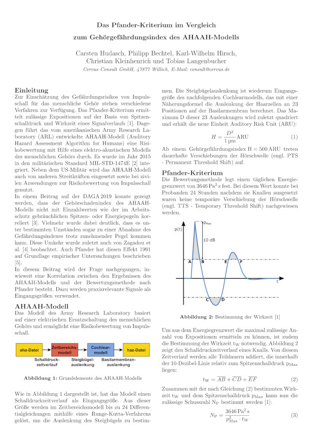 Das Pfander-Kriterium im Vergleich zum Gehörgefährdungsindex des AHAAH-Modells