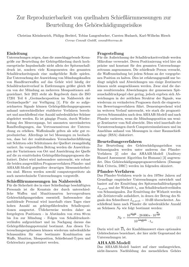 Zur Reproduzierbarkeit von quellnahen Schießlärmmessungen zur Beurteilung des Gehörschädigungsrisikos